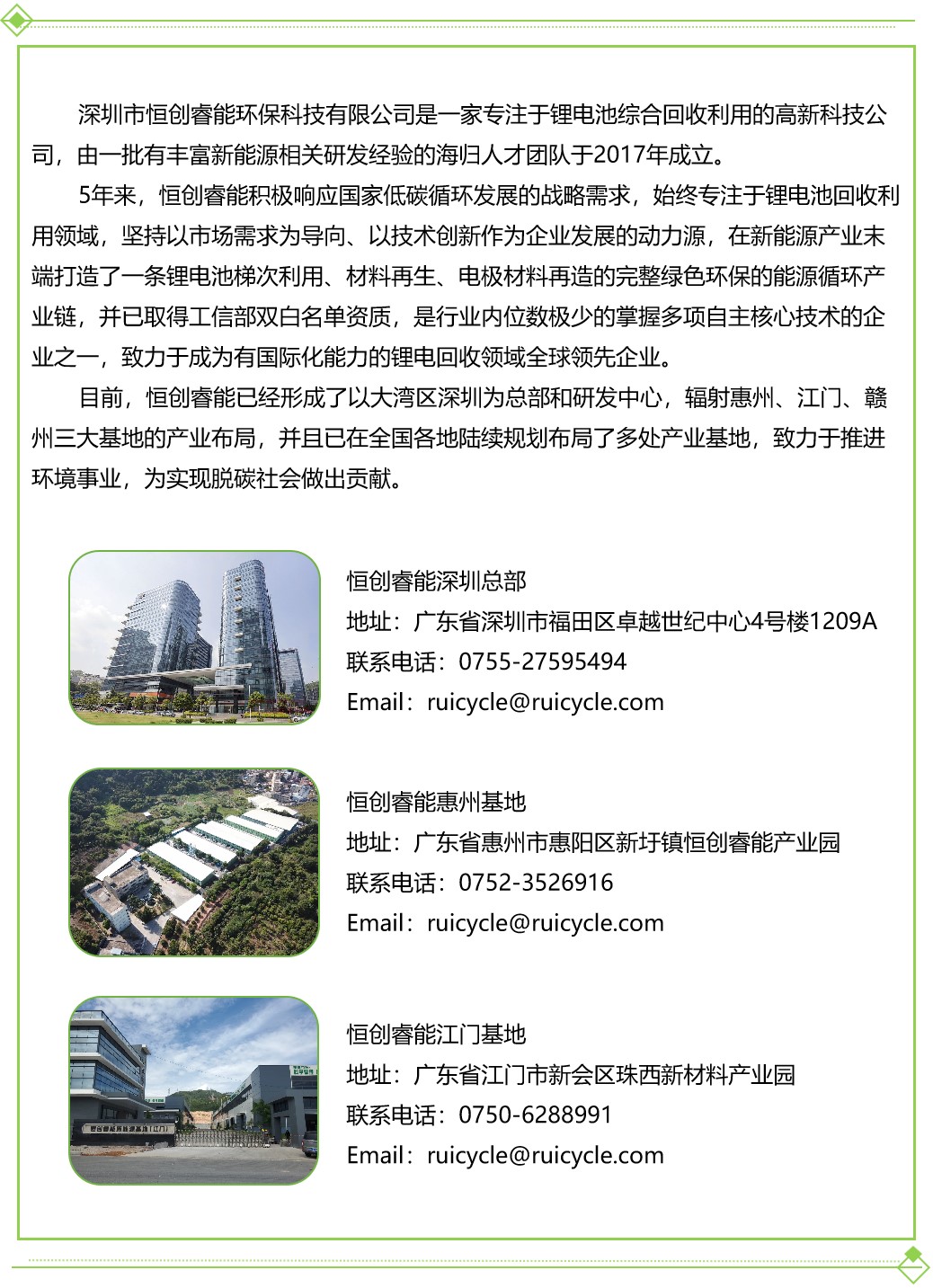 白峰強(qiáng)調(diào),恒創(chuàng)睿能擁有綜合梯次利用與資源再生利用的一個(gè)長(zhǎng)產(chǎn)業(yè)鏈條,作為大力推動(dòng)國(guó)內(nèi)可再生能源發(fā)展的開(kāi)拓者,最大的市場(chǎng)抓手在于城市礦山的采礦權(quán)。恒創(chuàng)睿能正在積極尋求緊密與新能源生產(chǎn)和應(yīng)用企業(yè)合作,共同探討可持續(xù)發(fā)展方案,加速推進(jìn)能源可持續(xù)利用產(chǎn)業(yè),用創(chuàng)新的回收技術(shù)布局全球鋰電池回收市場(chǎng)。