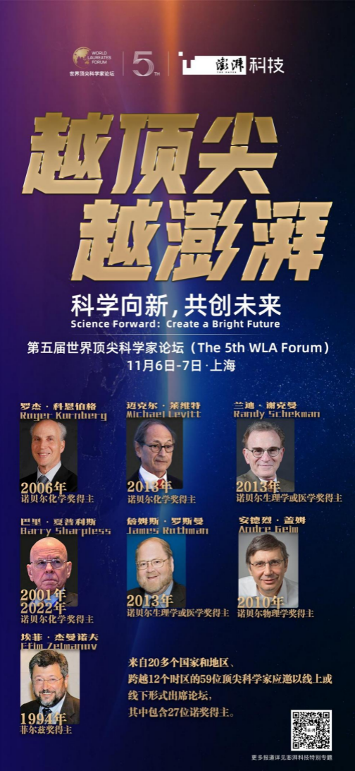 11月6日,第五屆世界頂尖科學(xué)家論壇開幕式在上海舉行。本屆論壇由世界頂尖科學(xué)家協(xié)會(huì)、中國(guó)科學(xué)技術(shù)協(xié)會(huì)、中央廣播電視總臺(tái)主辦。論壇的主題是“科學(xué)向新 共創(chuàng)未來(lái)”。中共上海市委書記陳吉寧,中國(guó)科學(xué)技術(shù)協(xié)會(huì)主席萬(wàn)鋼,中宣部副部長(zhǎng)、中央廣播電視總臺(tái)臺(tái)長(zhǎng)慎海雄,世界頂尖科學(xué)家協(xié)會(huì)主席、2006年諾貝爾化學(xué)獎(jiǎng)得主羅杰·科恩伯格出席開幕式并發(fā)表致辭。中國(guó)科學(xué)技術(shù)協(xié)會(huì)黨組書記、分管日常工作副主席張玉卓主持開幕式。27位諾貝爾獎(jiǎng)得主與30余位中國(guó)兩院院士組成“頂科天團(tuán)”,與50余位青年科學(xué)家、100余位“小科學(xué)家” 和各界嘉賓以線上或線下形式出席論壇。
